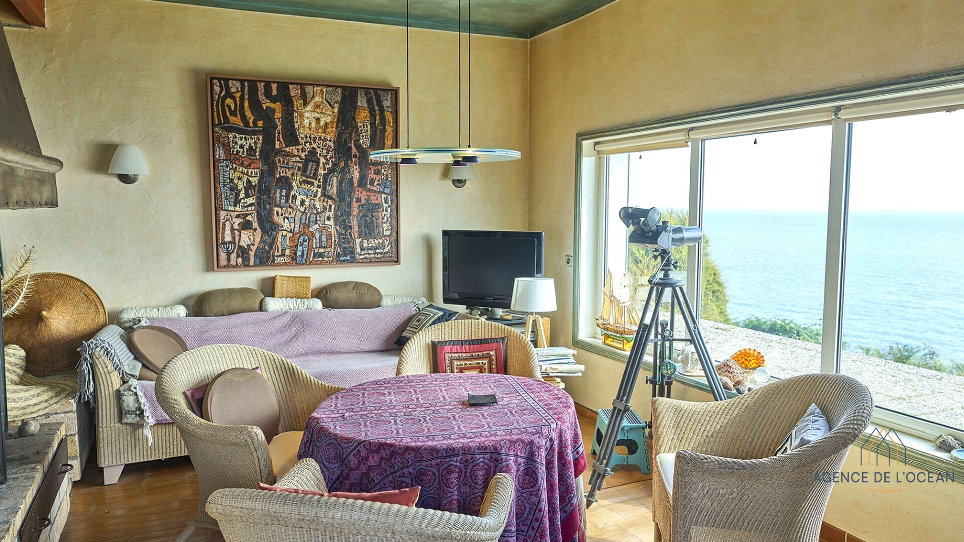 En surplomb de la côte intérieure de Belle-Île-en-Mer, sur un terrain de plus de 6 ha, grande maison faisant face à la presqu'île et la baie de Quiberon. La maison, construite sur 2 niveaux au début des années 70, se situe tout au bout d'un chemin qui mène à une crique et au sentier côtier. La maison comprend, au rez de chaussée, une entrée, un séjour-salle à manger avec vue sur la mer, une cuisine indépendante, une chambre avec vue sur la mer, un bureau avec vue sur mer, une salle d'eau et un WC. A l'étage, un large palier dessert quatre chambres, toutes avec une vue sur la mer, une salle d'eau et un WC indépendant. Une dernière chambre avec sa salle de bains est accessible depuis le salon. Le jardin longe la côte d'une plage à une autre et comprend un sous-bois dans lequel une petite dépendance peut être réhabilitée en habitation. Au delà de la vue exceptionnelle, les accès privilégiés à deux plages depuis la propriété rendent cette maison quasiment unique sur la région. Belle-Île-en-Mer est accessible en bateau depuis Quiberon ou Vannes ou par les airs via l'aérodrome de Bangor (piste de 600 M) qui se situe au milieu de l'ile ( à 6 km de la propriété). (5.00 % honoraires TTC à la charge de l'acquéreur.)