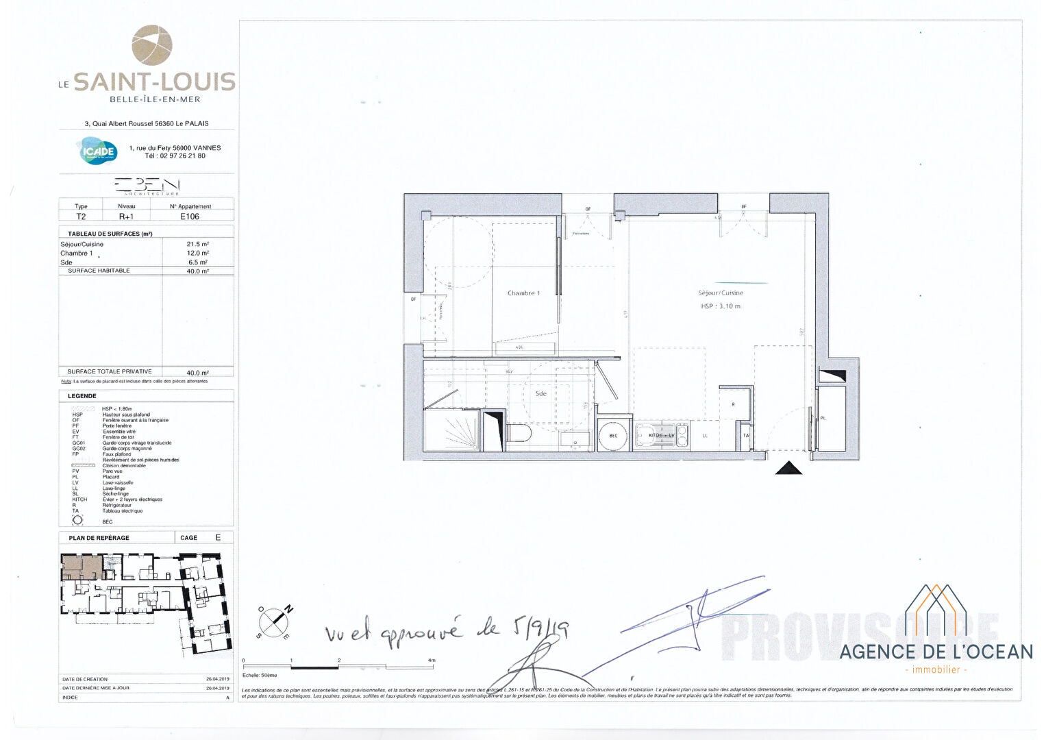 Dans la résidence neuve faisant face l'arrière port de Palais, au premier étage accessible avec un ascenseur, appartement neuf de deux pièces. L'appartement de 41 m² comprend une pièce à vivre, une chambre séparée et une spacieuse salle d'eau. Le bien peut être vendu avec une place de parking en supplément. Très bien situé à quelques minutes à pied du débarcadère et des commerces de Le Palais, l'appartement est plutôt lumineux avec de grandes fenêtres à la vue dégagée. L'enceinte urbaine de Palais (Vauban) commence au pied de la résidence et permet de rejoindre le sentier côtier. (5.04 % honoraires TTC à la charge de l'acquéreur.) Copropriété de 81 lots (Pas de procédure en cours).