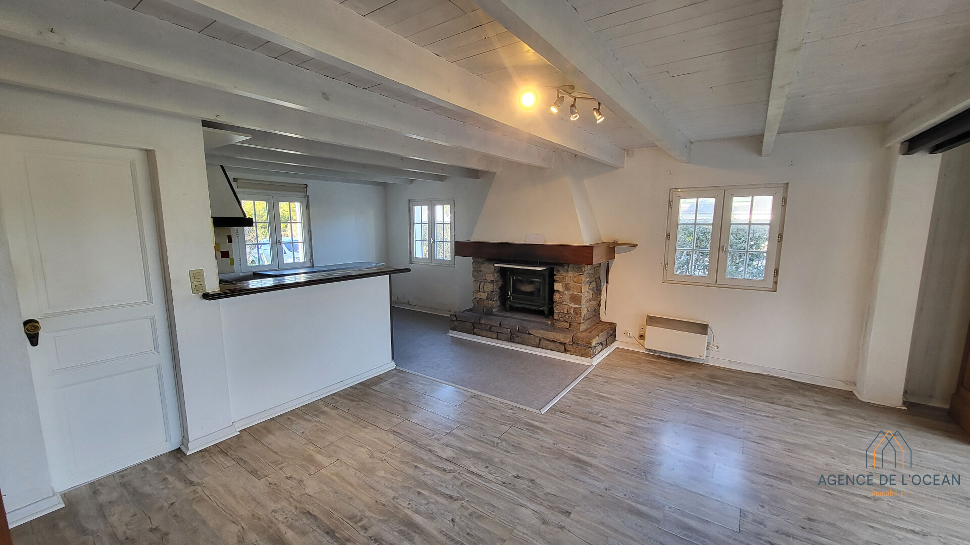 Découvrez cette charmante maison, construite en 1987 et située à Kervilahouen. Avec une surface de 70 m², cette maison dispose de trois pièces principales : un séjour/salon/cuisine de 47 m², exposé à l'est et au nord offrant une belle luminosité et deux chambres à l'étage. Une salle d'eau/WC , un cellier et un coin nuit complètent ce bien. Le chauffage est assuré par des radiateurs électriques et un poêle à bois pour des soirées chaleureuses. Le terrain s'étend sur 599 m², offrant un espace extérieur agréable. Située dans un hameau dynamique de Bangor, vous profiterez toute l'année d'un restaurant et d'une épicerie. Proche des plages de Donnant et de Vazen, des aiguilles de Port Coton, ce bien est idéal pour les amoureux de la nature. Des travaux sont à prévoir. (4.70 % honoraires TTC à la charge de l'acquéreur.)